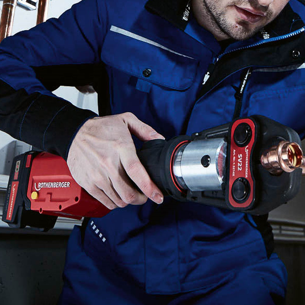 From the New Generation of press-fitting machines, the ROMAX 4000 includes 15mm, 22mm and 28mm M profile jaws and two high-power built-in LED lights that make operation a breeze, even in tight, poorly lit spaces. It is powered by the newest interchangeable Li-ion 4AH 18V battery platform, which equips it with 100% more cycles than standard battery technology.