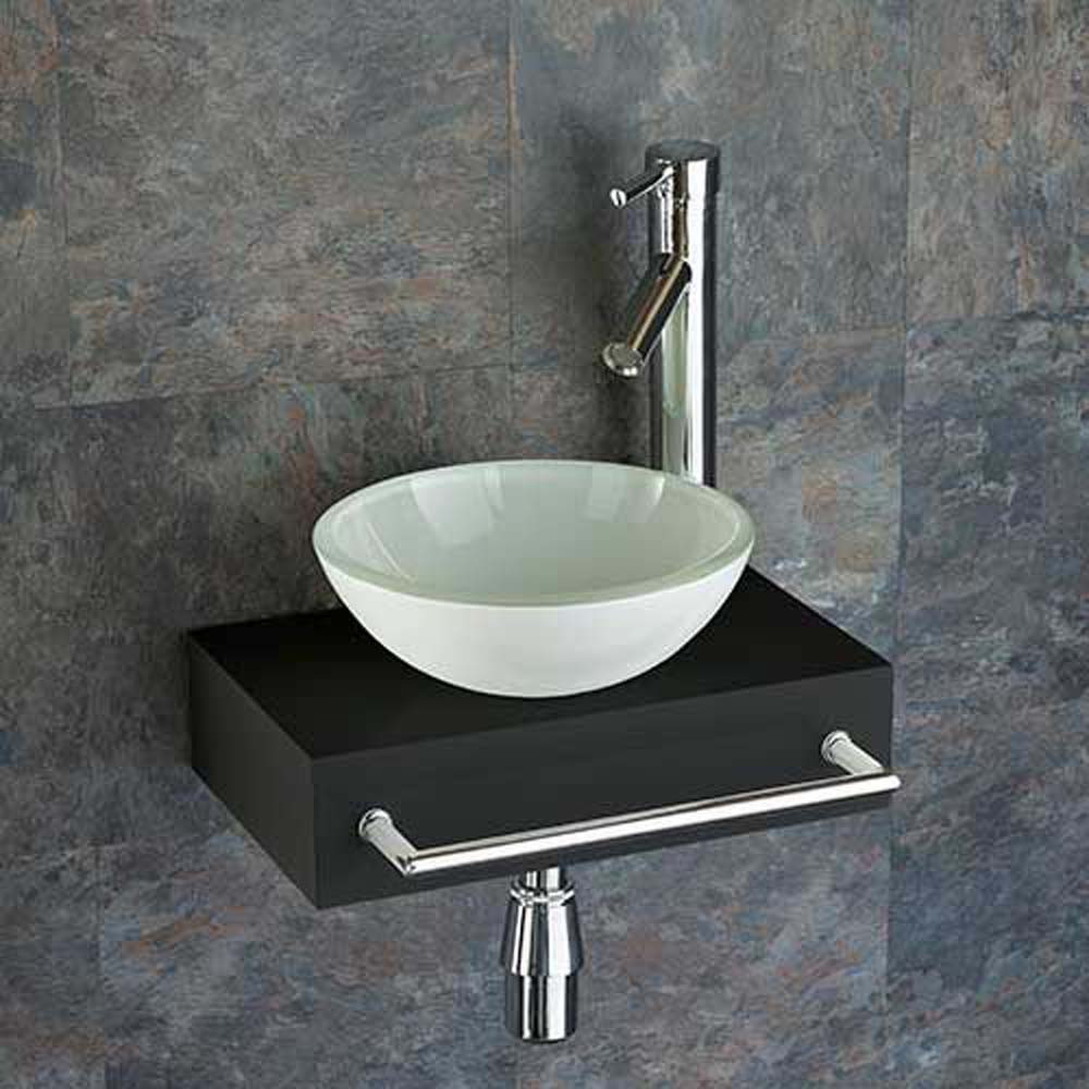 Suited to any contemporary bathroom, this gorgeous Savona White Glass Round Basin and Black Gloss Shelf comes complete with all essential fittings and features for a swift and easy installation. In this bathroom set, you'll find a sleek-style tap complete with a fixing ki... Read More