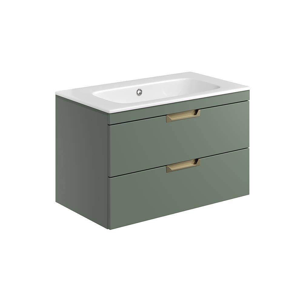 Features & Benefits: Scudo Aubrey 800mm x 500mm x 440mm 2-Drawer Wall Hung Reed Green Vanity Unit