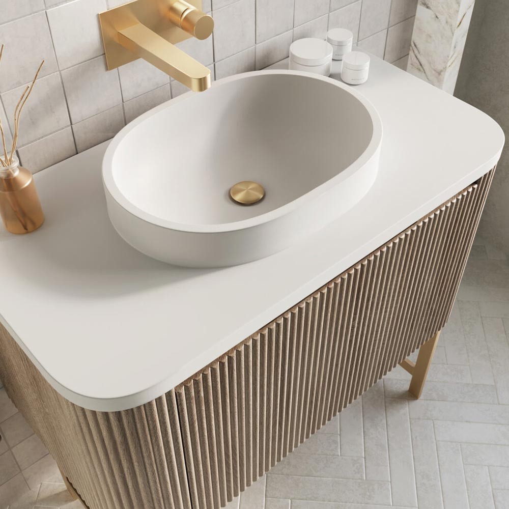 Features & Benefits: Scudo Linea Curve One Piece Matt White Vanity Basin and Worktop