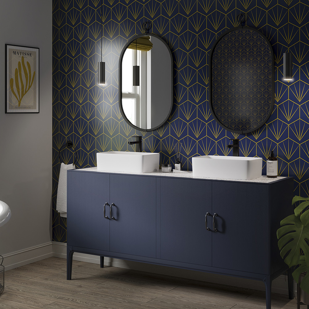 For those looking to add a vintage, luxurious aesthetic to their bathroom walls, the Showerwall Navy & Mustard Deco Tile Acrylic Shower Panel features a stunning art deco-inspired design, comprising a rich shade of navy blue and a geometric pattern made up of vibrant mustard yellow-coloured hexagons. The sheets are made from 4mm thick acrylic sheets, which are completely waterproof and will provide a watertight finish that will last for many years.