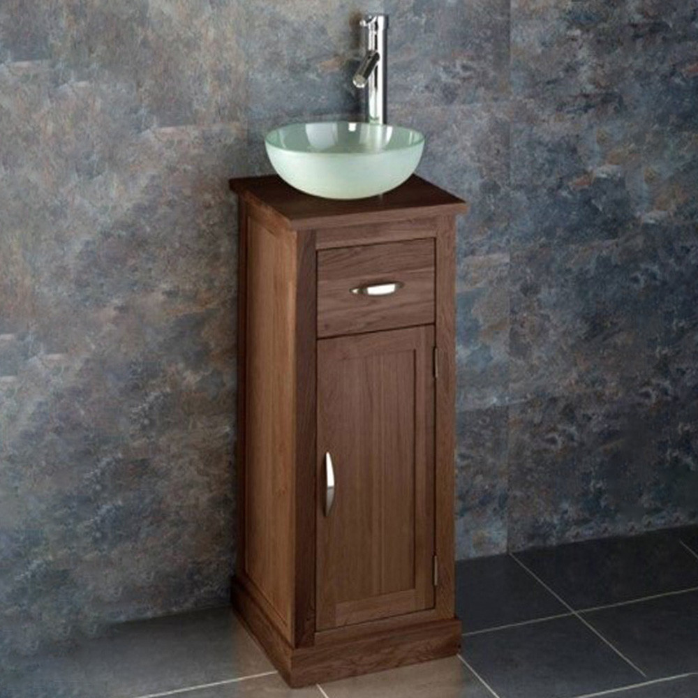 Features & Benefits: DISCON - Small Square Dark Oak Vanity Cabinet & Frosted Round Glass Basin