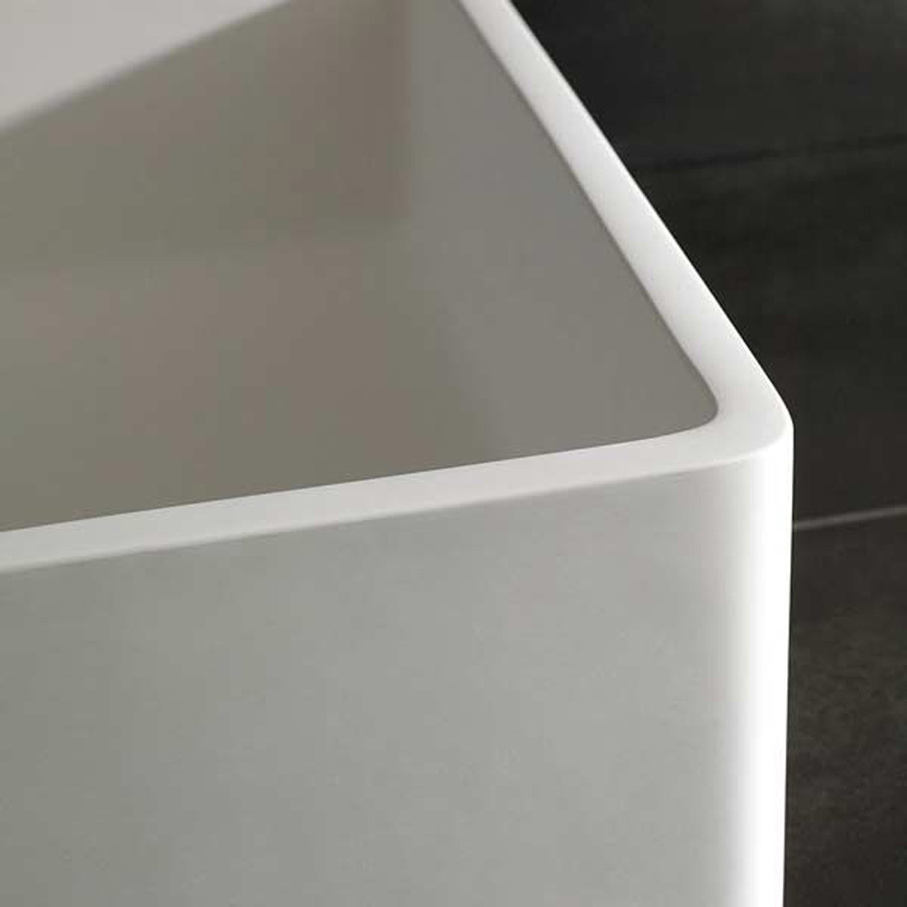 This Tora Rectangular Basin is designed to offer a sleek and minimalistic aesthetic while accommodating larger spaces. Its striking Pure White finish exudes luxury and sophistication, enhanced by its warm-to-touch matt look that adds a touch of modernity. The soft finish of the solid surface material enhances its luxurious appeal, elevating your overall bathroom ambience.