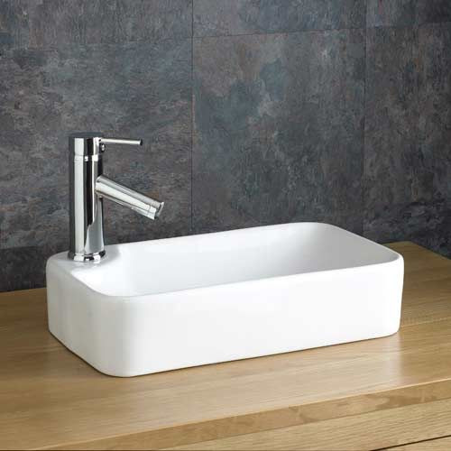 Features & Benefits: DISCON-Torre 440mm White Ceramic Shallow Rectangular Countertop Basin