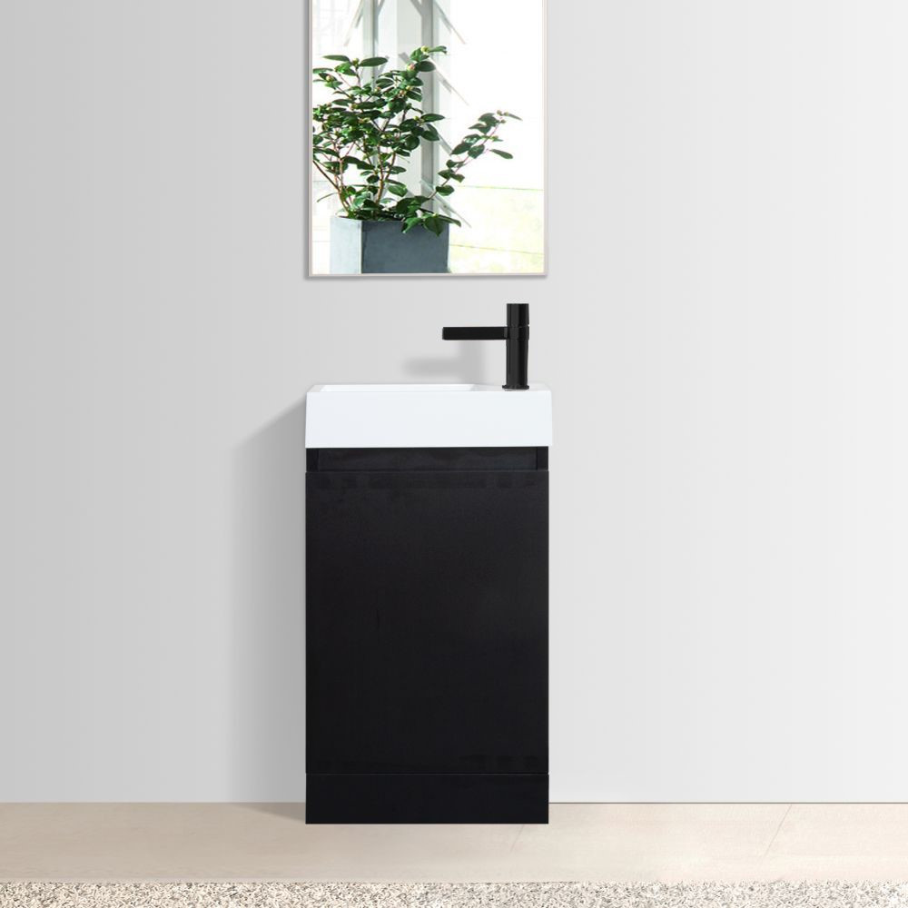Featuring a striking deep black finish that will create an eye-catching statement in any small bathroom, en-suite or cloakroom, this compact Tusa Narrow Vanity Unit ensures your bathroom has ample storage space for your toiletries and other sundries. Perfect for contemporary-styled bathrooms, its abundant storage capacity helps to ensure your bathroom retains a sleek, minimalist look, free from clutter. Fitted with a shelf to maximise the available storage space within the unit, a single right-hand opening cabinet door will conceal your items from view, maintaining a neat and tidy appearance. Comes fully assembled for quick and simple installation.