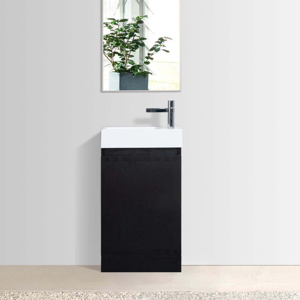 Featuring a striking deep black finish that will create an eye-catching statement in any small bathroom, en-suite or cloakroom, this compact Tusa Narrow Vanity Unit ensures your bathroom is equipped with ample storage space for your toiletries and other sundries. Perfect for contemporary-styled bathrooms, its abundant storage capacity helps to ensure your bathroom retains a sleek, minimalist look, free from clutter. Fitted with a shelf to maximise the available storage space within the unit, a single right-hand opening cabinet door will conceal your items from view, maintaining a neat and tidy appearance. Comes fully assembled for quick and simple installation.