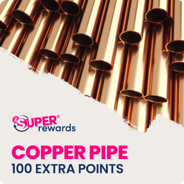 This December, get an extra 100 SUPER rewards points on all orders of copper pipe! Saving you money, time and time again. SUPER rewards customers only, sign up for FREE today. Terms & conditions apply.